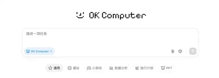 具体来说「OK Computer」已掌握的工具集包括列待办事项、写 Python 代码、操作终端、浏览网页、文字搜索、图片搜索、图片生成、音频生成、接入专业财经数据源、网站部署等。「OK Computer」目前擅长的任务类型,包括多功能网站原型开发、海量数据分析与可视化、高品质演示 PPT 制作等。